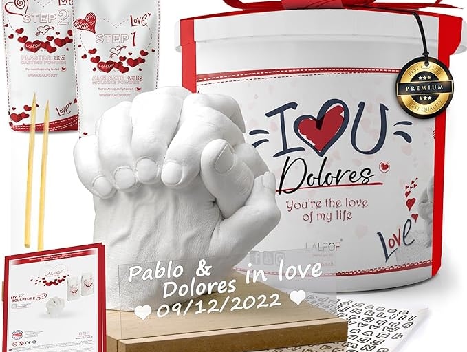 Un regalo precioso y simbólico: una escultura 3D de vuestras manos entrelazadas, con vuestros nombres o iniciales. Un recuerdo para toda la vida, perfecto para parejas sentimentales, creativas o fans del DIY con resultados bonitos garantizados.